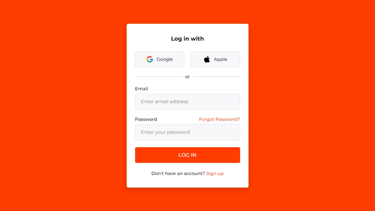 /* Google Fonts Link */@import url('https://fonts.googleapis.com/css2?family=Montserrat:ital,wght@0,100..900;1,100..900&display=swap');/* Resetting default styling and setting font-family */* {margin: 0;padding: 0;box-sizing: border-box;font-family: "Montserrat", sans-serif;}body {width: 100%;min-height: 100vh;padding: 0 10px;display: flex;background: #ff3c00;justify-content: center;align-items: center;}/* Login form styling */.login_form {width: 100%;max-width: 435px;background: #fff;border-radius: 6px;padding: 41px 30px;box-shadow: 0 10px 20px rgba(0, 0, 0, 0.15);}.login_form h3 {font-size: 20px;text-align: center;}/* Google & Apple button styling */.login_form .login_option {display: flex;width: 100%;justify-content: space-between;align-items: center;}.login_form .login_option .option {width: calc(100% / 2 - 12px);}.login_form .login_option .option a {height: 56px;display: flex;justify-content: center;align-items: center;gap: 12px;background: #F8F8FB;border: 1px solid #DADAF2;border-radius: 5px;margin: 34px 0 24px 0;text-decoration: none;color: #171645;font-weight: 500;transition: 0.2s ease;}.login_form .login_option .option a:hover {background: #ededf5;border-color: #ff3c00;}.login_form .login_option .option a img {max-width: 25px;}.login_form p {text-align: center;font-weight: 500;}.login_form .separator {position: relative;margin-bottom: 24px;}/* Login option separator styling */.login_form .separator span {background: #fff;z-index: 1;padding: 0 10px;position: relative;}.login_form .separator::after {content: '';position: absolute;width: 100%;top: 50%;left: 0;height: 1px;background: #C2C2C2;display: block;}form .input_box label {display: block;font-weight: 500;margin-bottom: 8px;}/* Input field styling */form .input_box input {width: 100%;height: 57px;border: 1px solid #DADAF2;border-radius: 5px;outline: none;background: #F8F8FB;font-size: 17px;padding: 0px 20px;margin-bottom: 25px;transition: 0.2s ease;}form .input_box input:focus {border-color: #ff3c00;}form .input_box .password_title {display: flex;justify-content: space-between;text-align: center;}form .input_box {position: relative;}a {text-decoration: none;color: #ff3c00;font-weight: 500;}a:hover {text-decoration: underline;}/* Login button styling */form button {width: 100%;height: 56px;border-radius: 5px;border: none;outline: none;background: #ff3c00;color: #fff;font-size: 18px;font-weight: 500;text-transform: uppercase;cursor: pointer;margin-bottom: 28px;transition: 0.3s ease;}form button:hover {background: #ff3c00;}