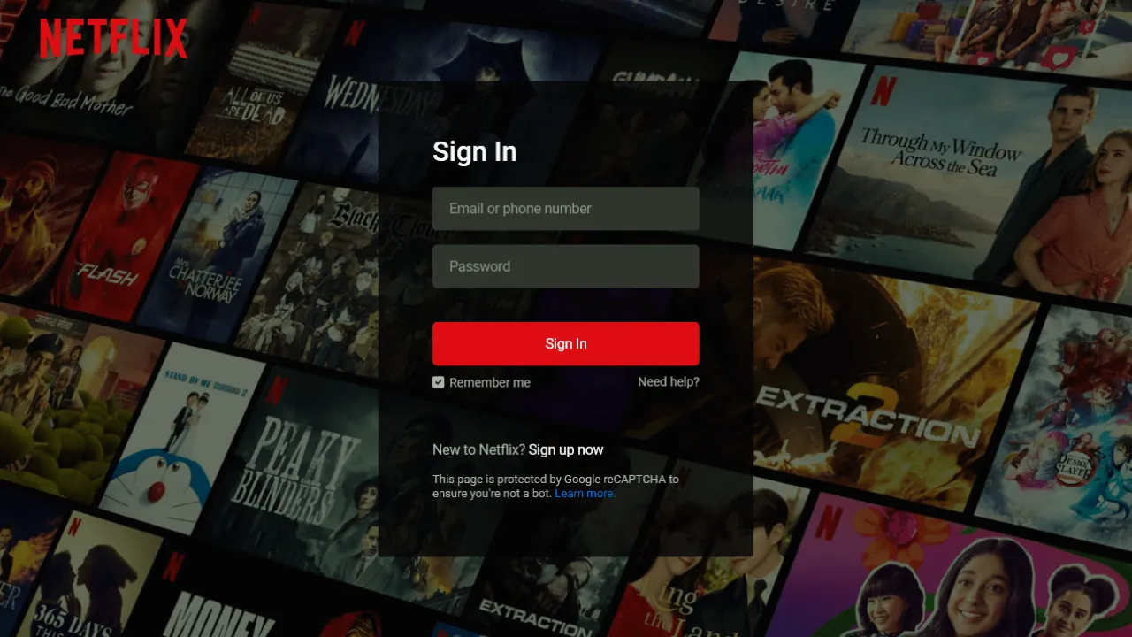<!DOCTYPE html><!-- Coding By Abhikesh - www.abhikesh.com --><html lang="en"><head><meta charset="UTF-8"><meta name="viewport" content="width=device-width, initial-scale=1.0"><title>Netflix Login Page | Abhikesh Kumar</title><link rel="stylesheet" href="style.css"></head><body><nav><a href="#"><img src="images/logo.svg" alt="logo"></a></nav><div class="form-wrapper"><h2>Sign In</h2><form action="#"><div class="form-control"><input type="text" required><label>Email or phone number</label></div><div class="form-control"><input type="password" required><label>Password</label></div><button type="submit">Sign In</button><divclass="form-help"><div class="remember-me"><input type="checkbox" id="remember-me"><label for="remember-me">Remember me</label></div><a href="#">Need help?</a></div></form><p>New to Netflix? <a href="#">Sign up now</a></p><small>This page is protected by Google reCAPTCHA to ensure you're not a bot.<a href="#">Learn more.</a></small></div></body></html>
